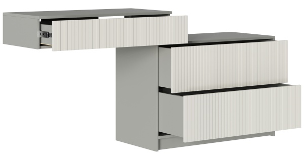 Корпус изделия состоит из двух независимых блоков, в соединяемых между собой при помощи межсекционных стяжек: Комод и Консоль.