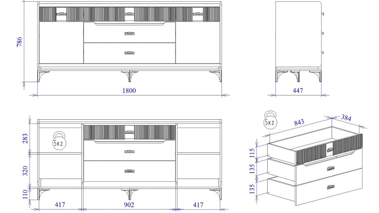 Артикул: A64861Шкаф 2300 мм 5-дверный NEW Сиде Белый (СБК)