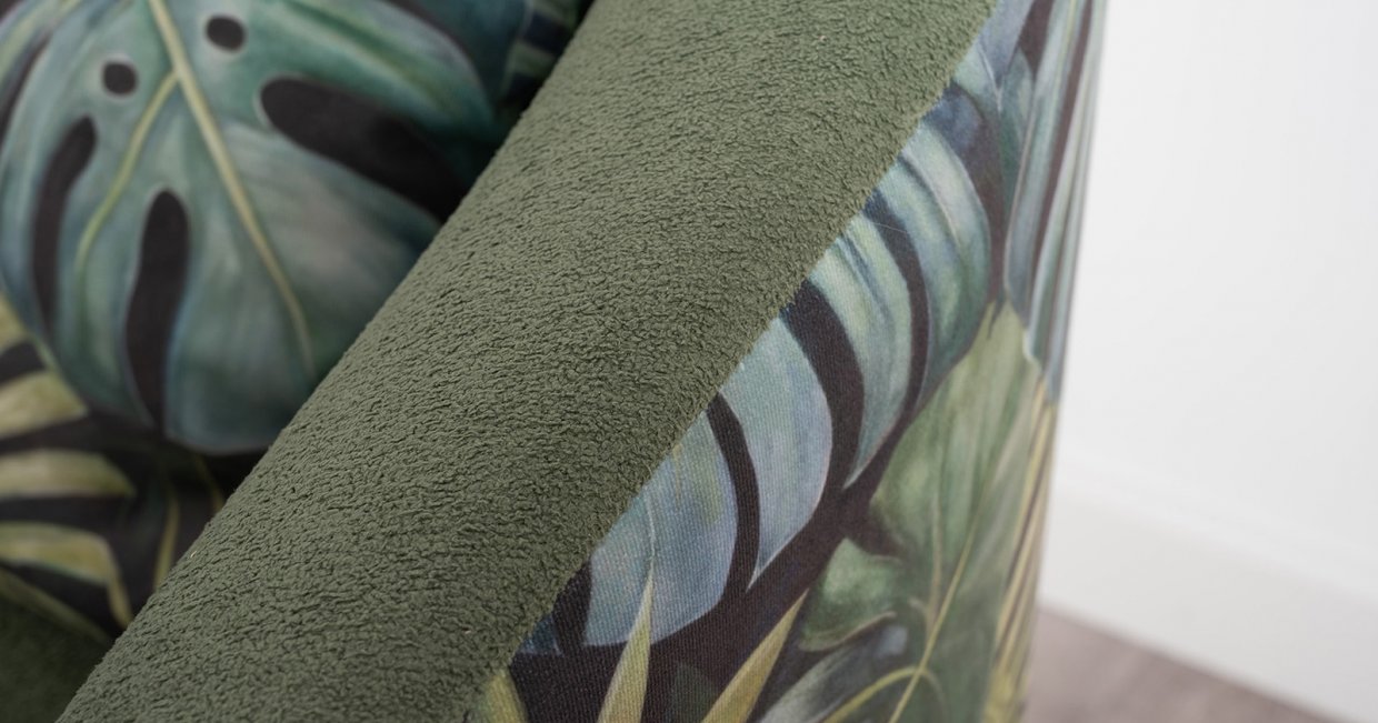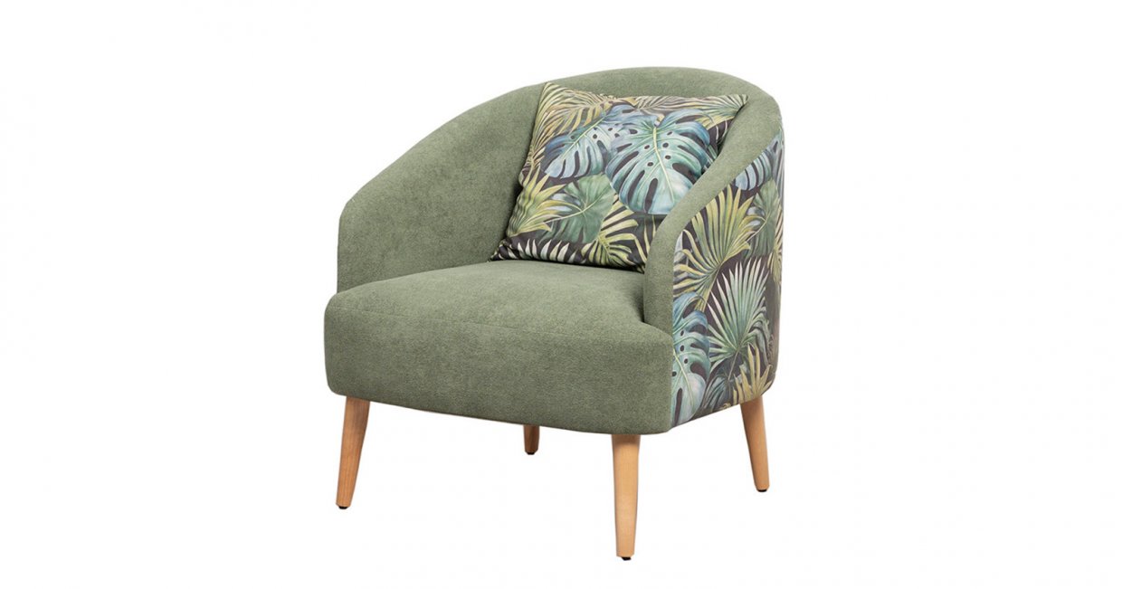 Маттиас — оригинальное кресло готовое стать акцентом в интерьере. Яркий тропический принт «монстера» на спинке мгновенно сделает комнату живой и современной.