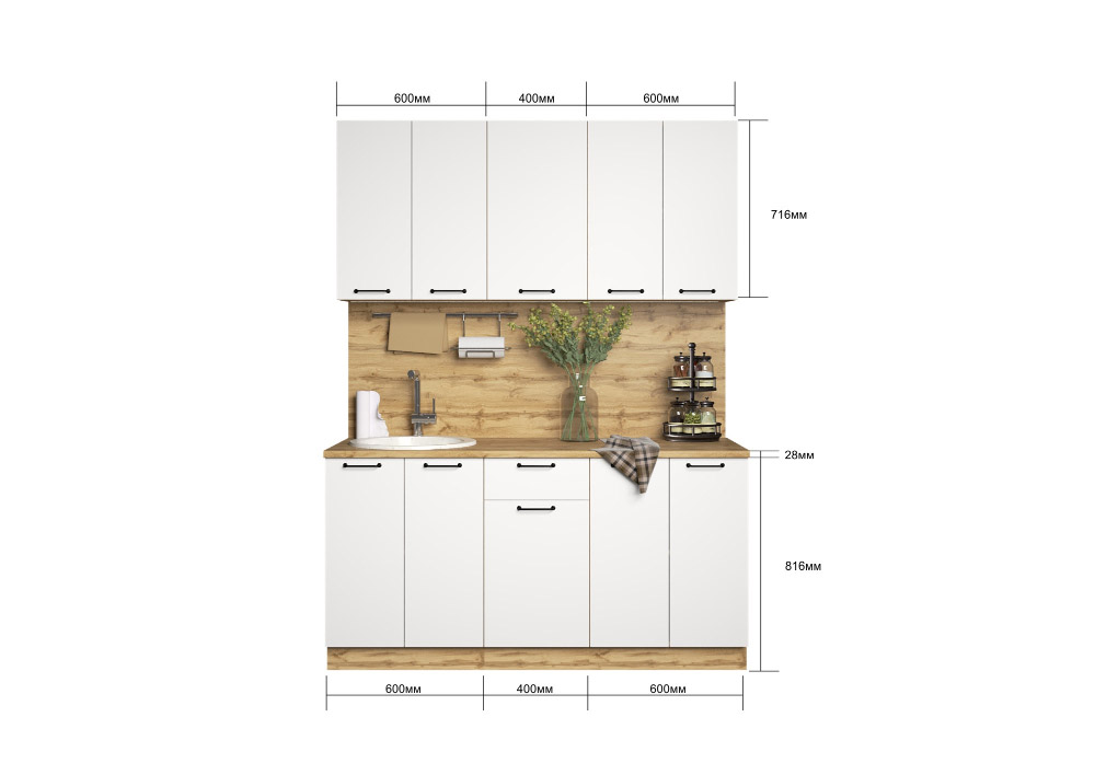 Стеновая панель, мойка, смеситель - не входят в стоимость комплекта.