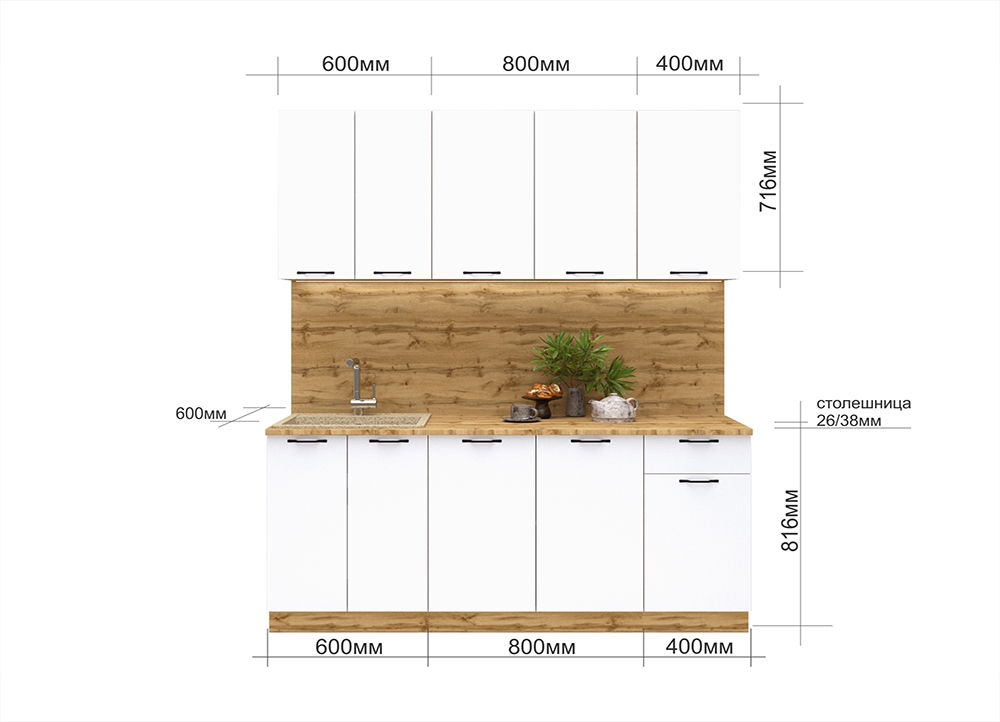 Стеновая панель, мойка, смеситель - не входят в стоимость комплекта.