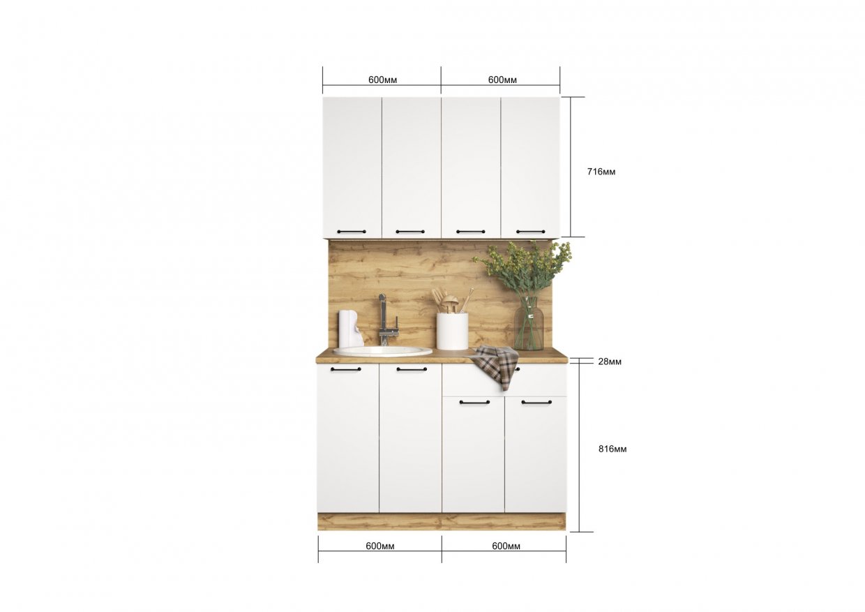 Артикул: A64491КУхонный гарнитур Валерия 1400 мм вотан/белый (Сурская)