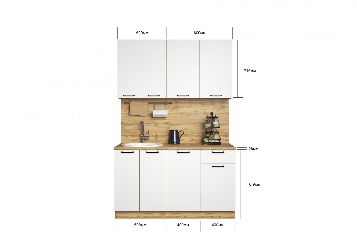 Артикул: A64489КУхонный гарнитур Валерия 1600 мм вотан/белый(Сурская)