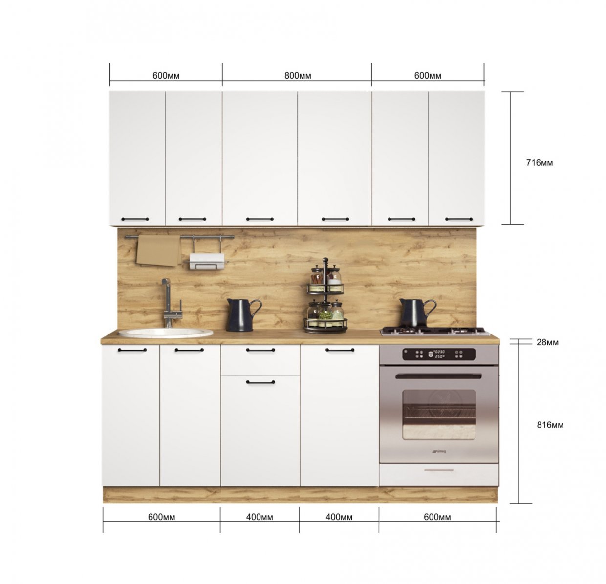 Артикул: A64480КУхонный гарнитур Валерия 1800 мм вотан/белый (Сурская)