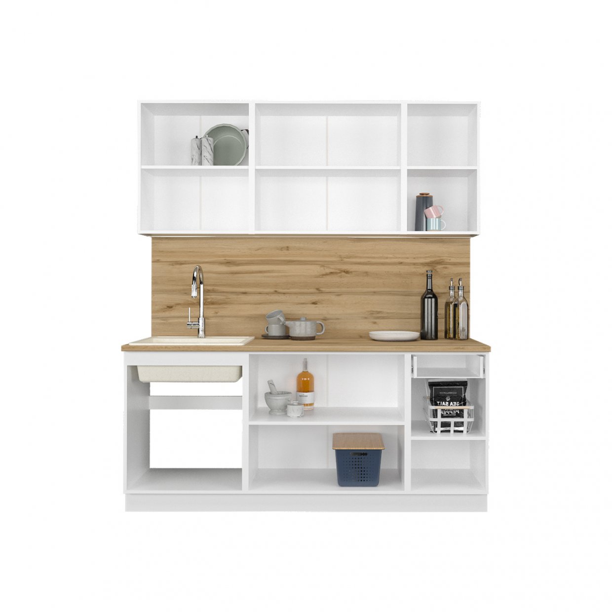 Стеновая панель, мойка, смеситель - не входят в стоимость комплекта.