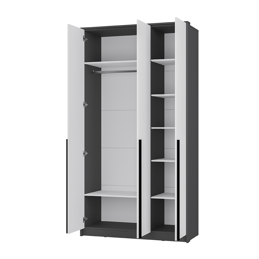 Коллекция "Шарм" - современная классика в контрастном исполнении "белый/графит". Шкаф обретает массивность благодаря монолитному ЛДСП - порталу, дополнен вертикальными черными ручками и надежными петлями с доводчиками. Дополнительно комплектуется полками ПЛ-06 белый.