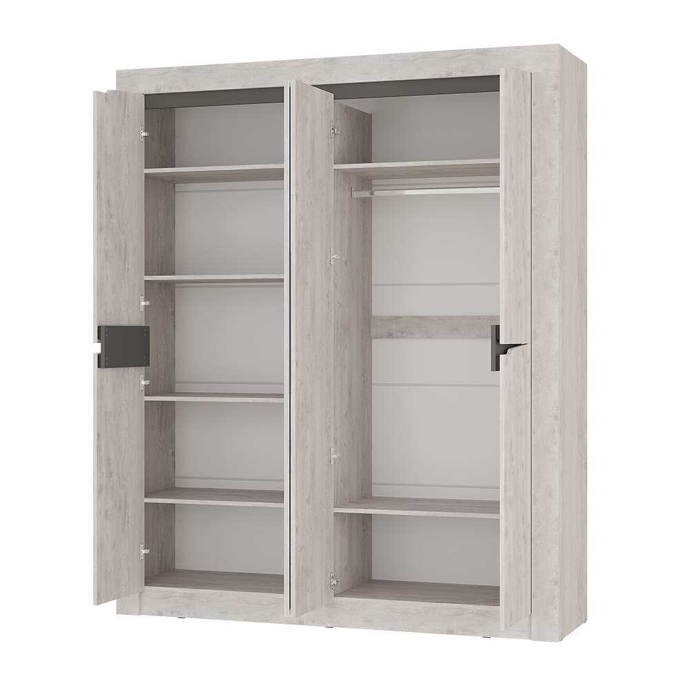 Шкаф «Леонардо» - идеальный выбор для спальни. Зеркальные вставки в центре визуально расширят пространство и наполнят пространство светом. Множество разнообразных зон для хранения позволят разместить большой гардероб.
