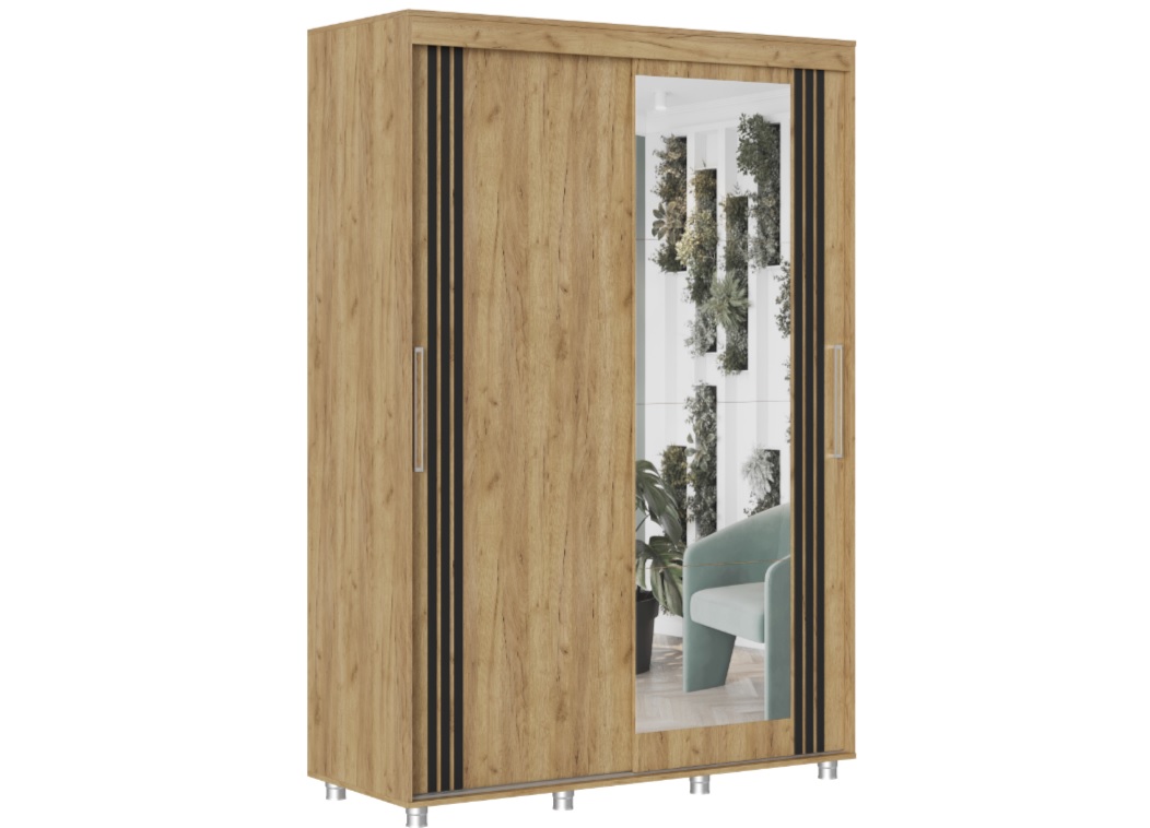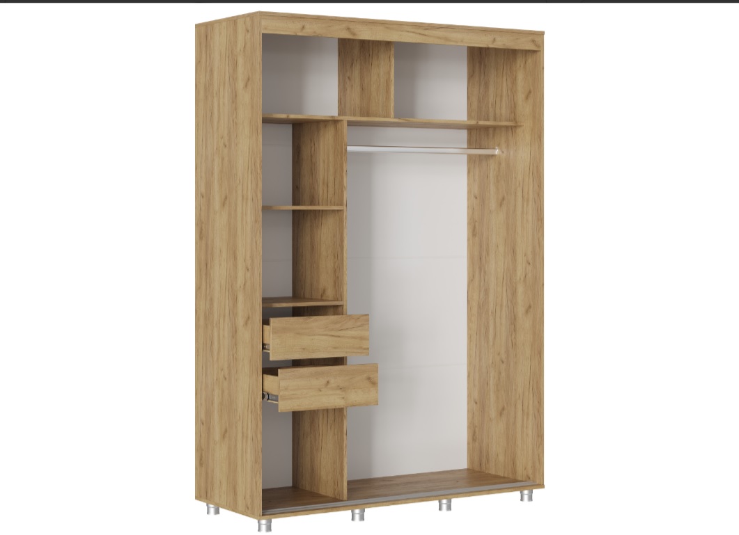 ФОРЕСТ Шкаф-купе 1.5 м. производится с фасадами, выполненными из ЛДСП 16мм. в цвет каркаса, дополнен комплектом зеркал на одной из створок и штапиком-накладкой (6*25 мм) на обеих створках.